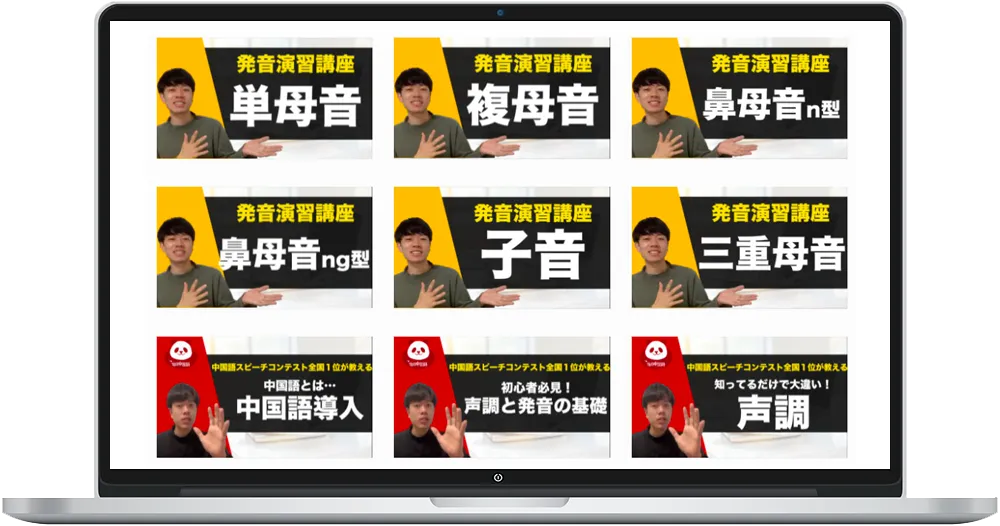 初心者がHSK6級レベルに到達するために必要な単語力・文法力・スピーキング力・リスニング力を200本以上の動画講義で学ぶことができます