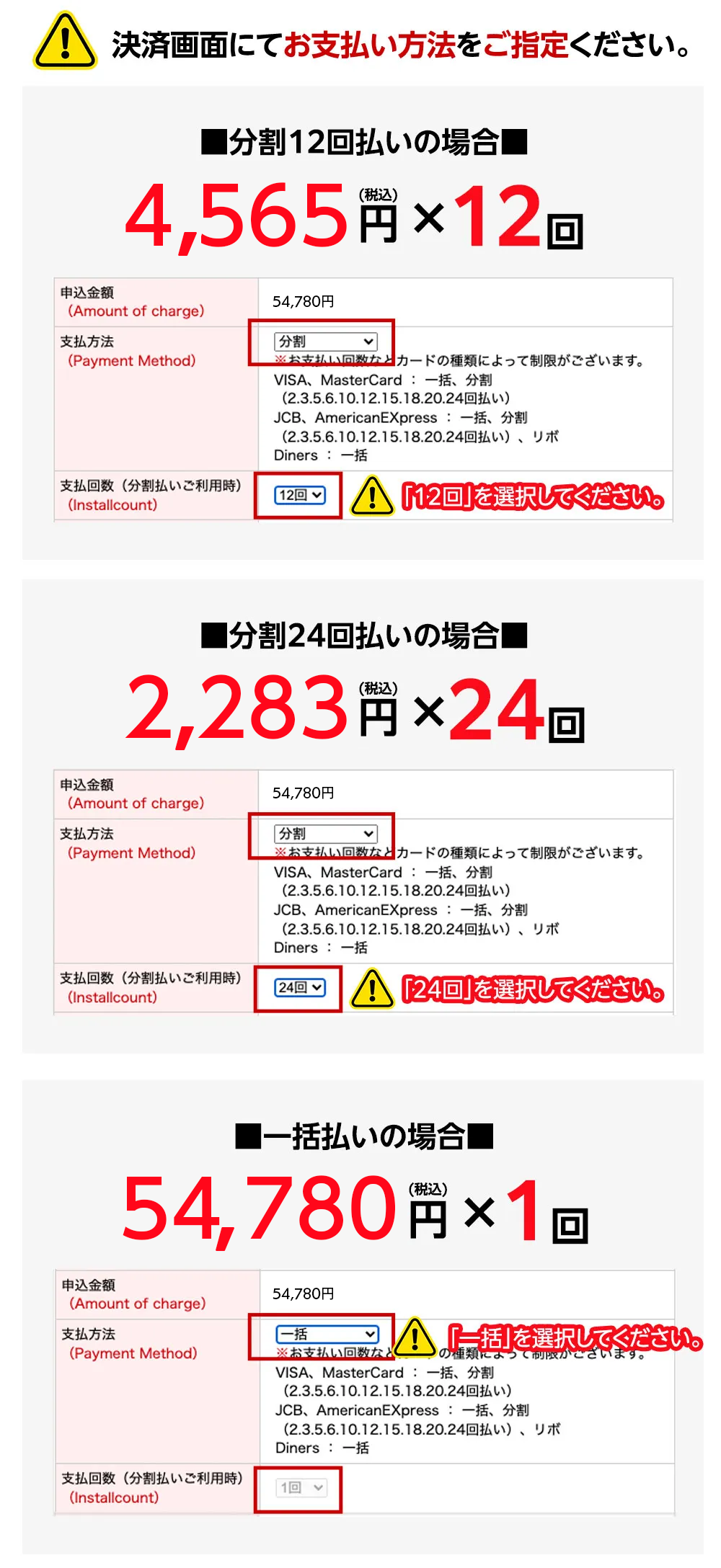 Q.カード払い・一括払い・分割払いは対応していますか??